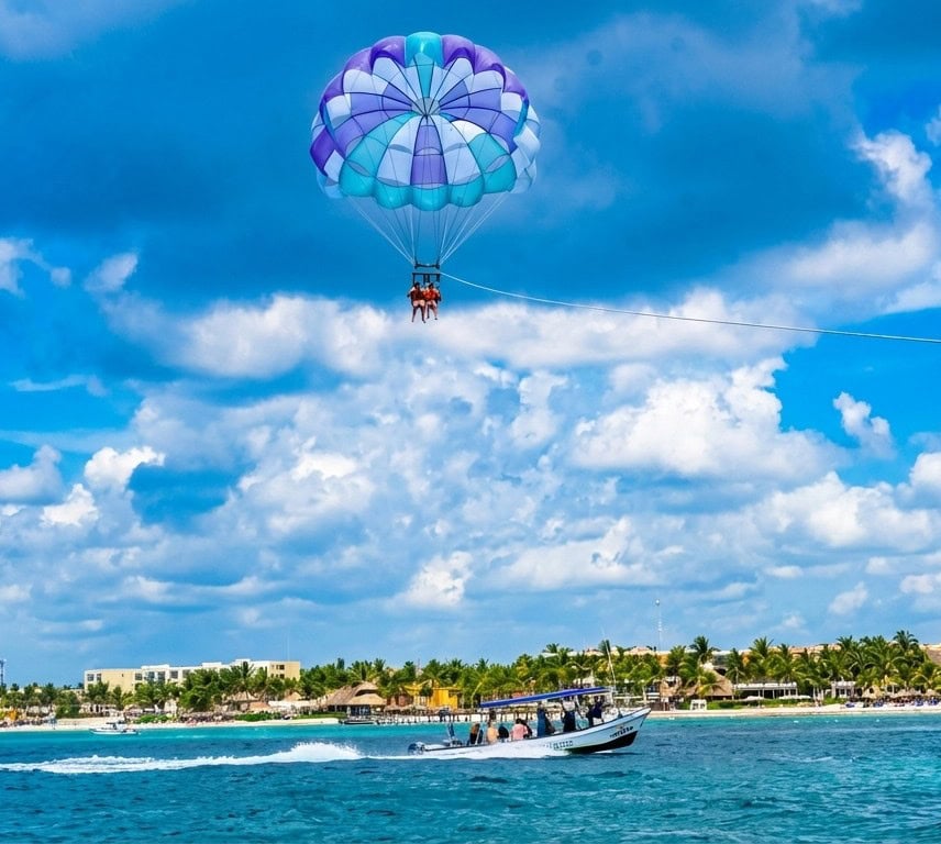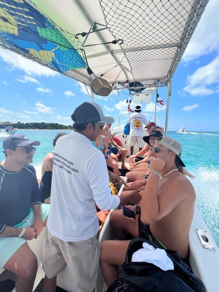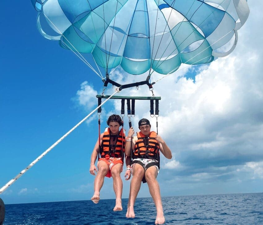 During the peak season (Jan – Mar) island excursions fill up fast and there are tons of people so I HiGHLY recommend you book tours and activities MINIMUM 7-days in advance to secure a spot. For perspective each day we turn away between 5 -30 people who walk up and want to try Cozumel Parasailing because they see other people flying and get FOMO.