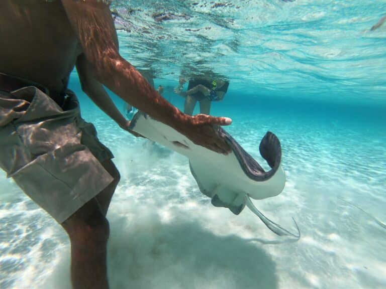 Our snorkeling instructor holding a eagle ray!